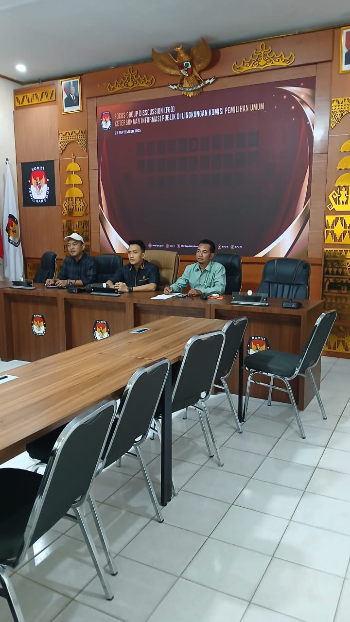 Pada hari Selasa, 23 September 2025, anggota KPU Kota Metro Erwin Agus Fadli dan Firman Arafat bersama Kasubbag Partisipasi Masyarakat dan SDM Dedi Suwarsono mengikuti kegiatan Focus Group Discussion (FGD) bertajuk Keterbukaan Informasi Publik di Lingkungan KPU Pasca Pemilu dan Pilkada Serentak Tahun 2024. Kegiatan ini dilaksanakan secara daring melalui Zoom Meeting dan diikuti dari Aula KPU Kota Metro.