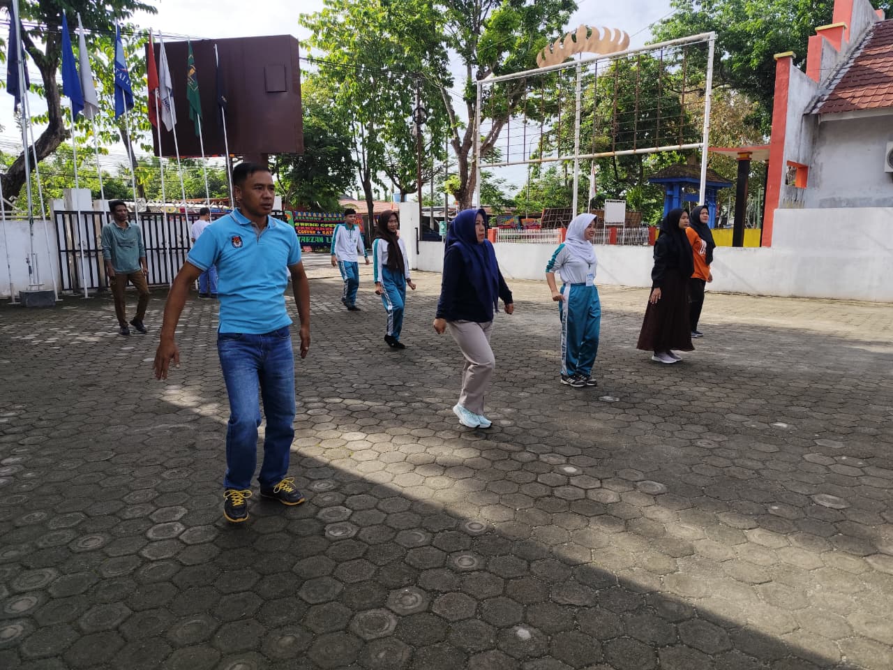 Senam pagi dimulai pukul 07.30 WIB dengan iringan musik yang membangkitkan semangat., menciptakan suasana ceria dan penuh antusiasme. Pegawai dan peserta PKL tampak kompak mengikuti setiap gerakan, menunjukkan semangat kebersamaan dan kepedulian terhadap kesehatan jasmani.