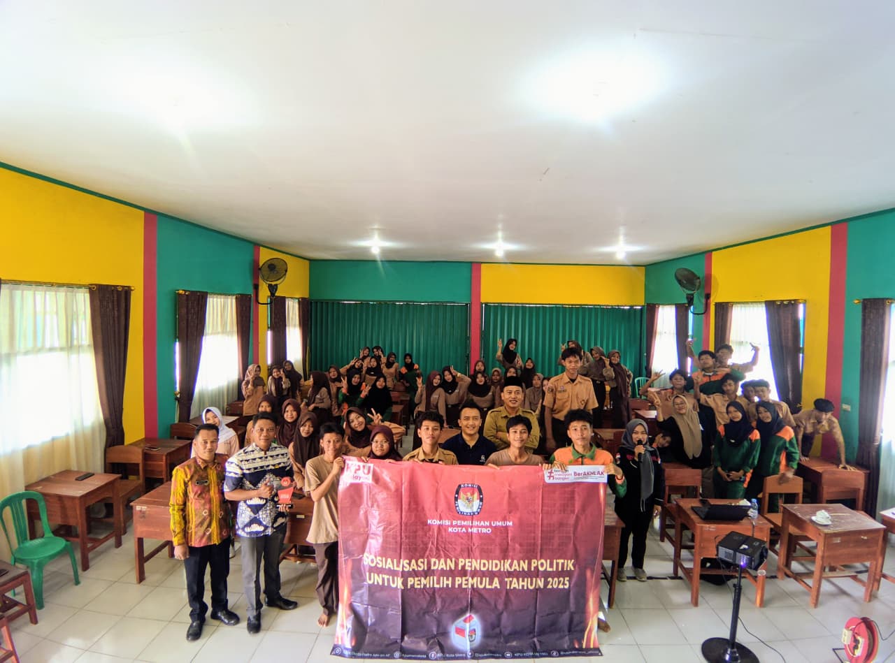 Kegiatan sosialisasi ini berjalan dengan penuh antusiasme, ditandai dengan interaksi aktif antara narasumber dan siswa. Melalui kegiatan ini, KPU Kota Metro berharap dapat menumbuhkan semangat demokrasi di kalangan pemilih pemula, sehingga mereka siap berkontribusi dalam mewujudkan pemilu yang berkualitas dan berintegritas.