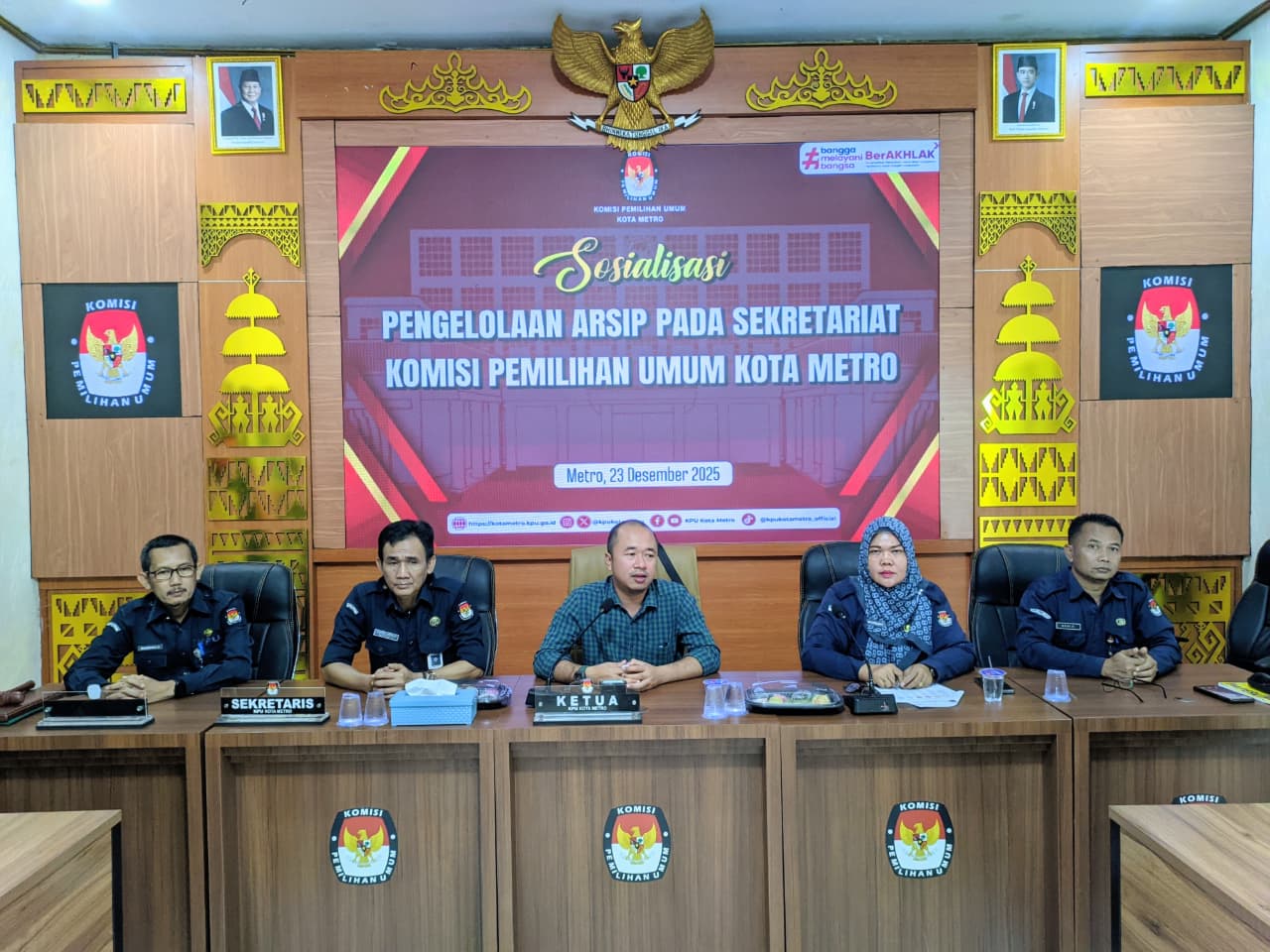 #temanpemilih, Pada hari Selasa, 23 Desember 2025, Komisi Pemilihan Umum (KPU) Kota Metro menyelenggarakan Kegiatan Sosialisasi Pengelolaan Arsip yang bertempat di Aula KPU Kota Metro. Kegiatan ini diikuti oleh seluruh staf Sekretariat KPU Kota Metro sebagai bagian dari upaya peningkatan tata kelola administrasi dan dokumentasi kelembagaan.