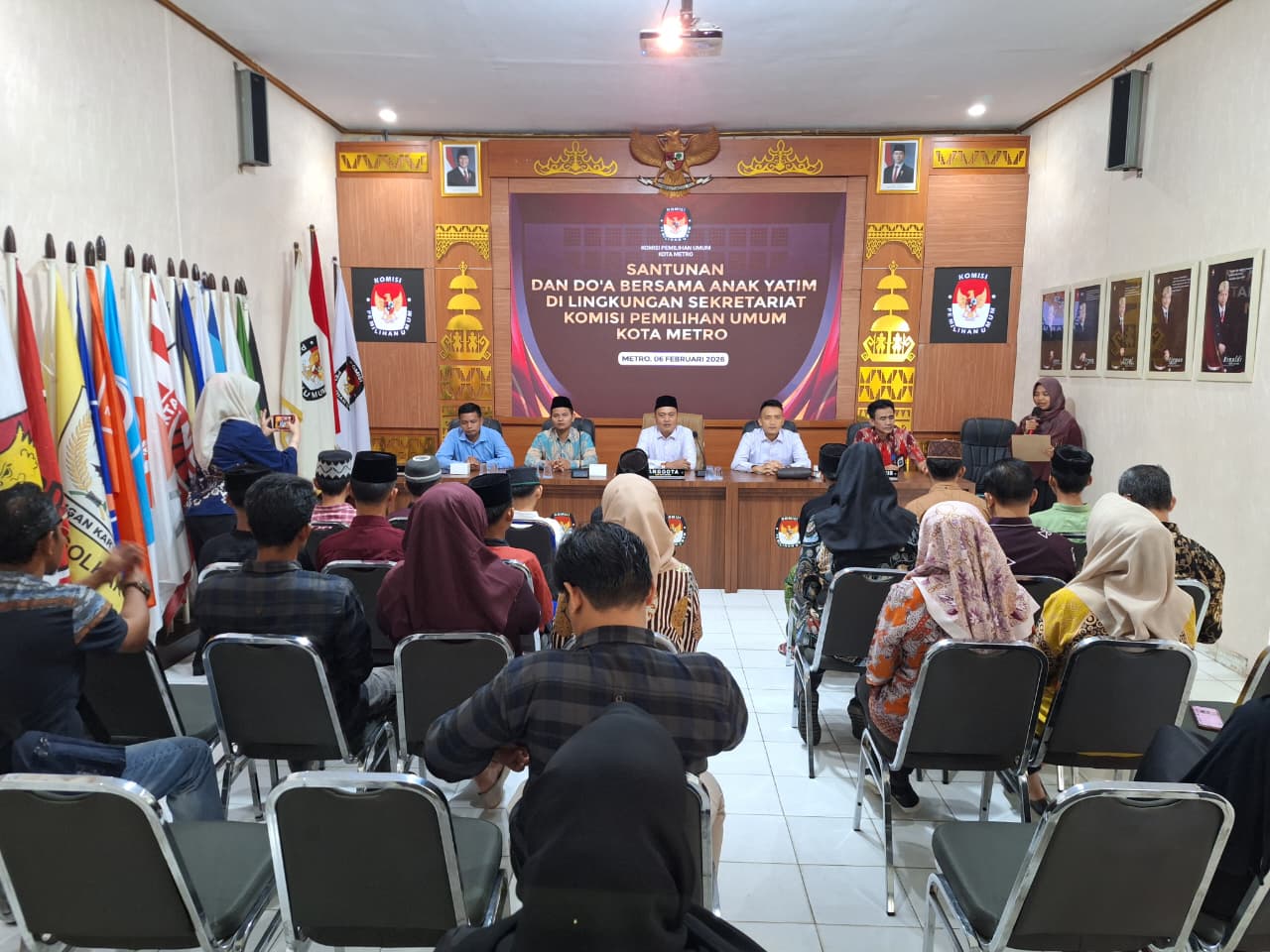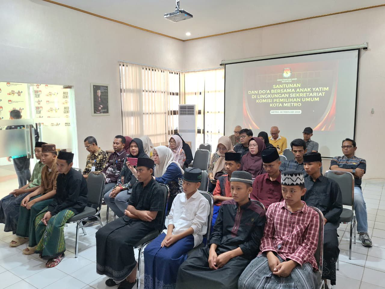 #Temanpemilih, Pada hari Jum’at, 6 Februari 2026, Komisi Pemilihan Umum (KPU) Kota Metro menyelenggarakan kegiatan santunan dan doa bersama anak yatim yang berlangsung di lingkungan Sekretariat KPU Kota Metro.