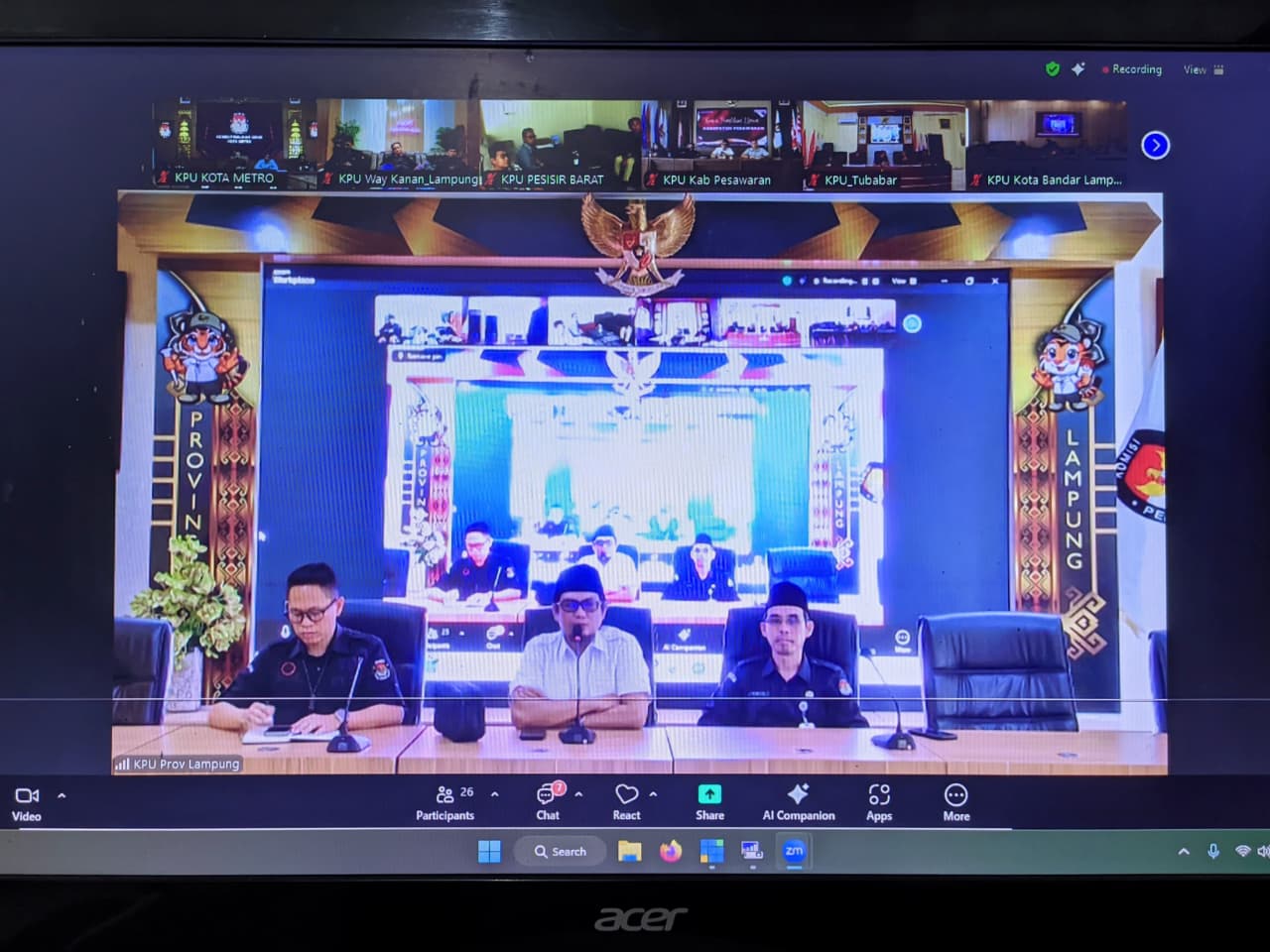 Ketua, Anggota, Sekretaris, serta jajaran Kasubbag KPU Kota Metro mengikuti Seminar dalam rangka International Women’s Day dengan tema “Penguatan Peran Perempuan dalam Proses Elektoral sebagai Pilar Demokrasi Substantif” yang diselenggarakan oleh KPU RI secara daring di Aula KPU Kota Metro.