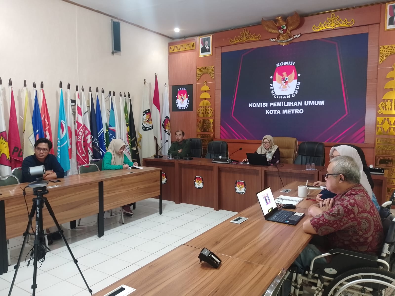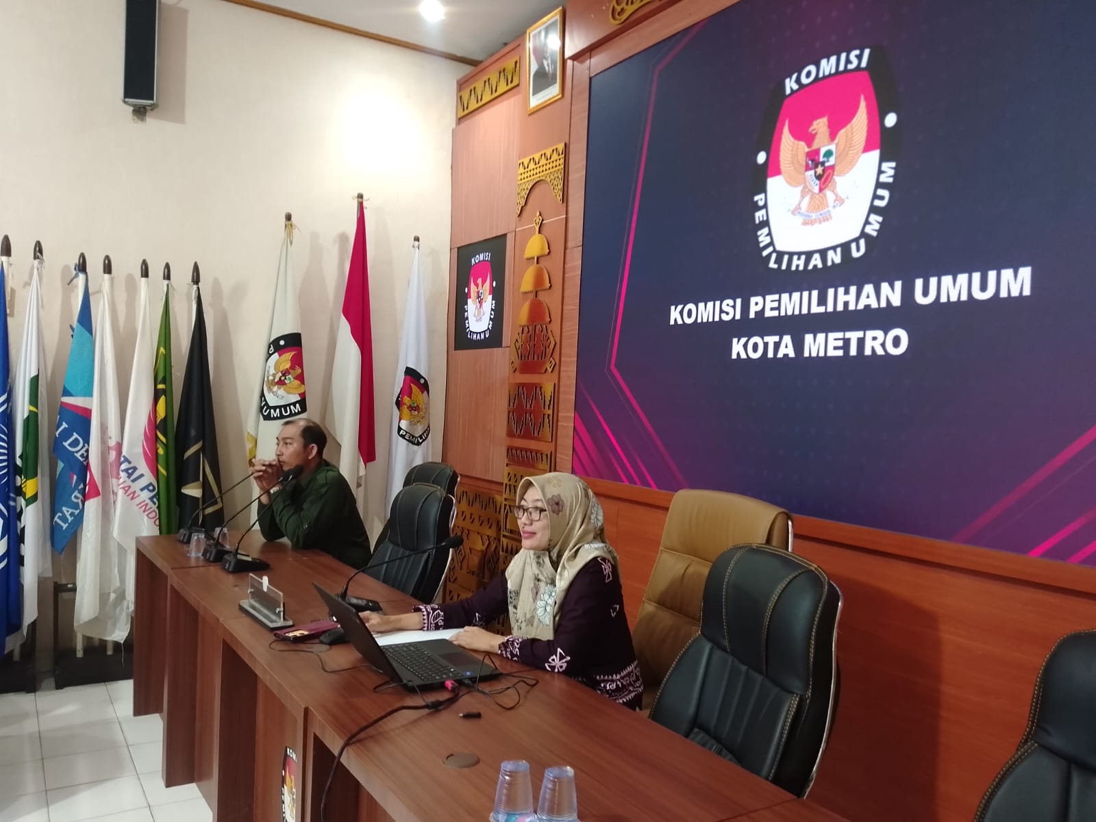 Admin SILON Eni Lestari didampingi Winanto Yudi Laksono dalam rangka melaksanakan kegiatan Penguatan kapasitas kelembagaan, dalam pelatihan Aplikasi SILON di Aula Kantor KPU Kota Metro kepada Staf KPU Kota Metro.