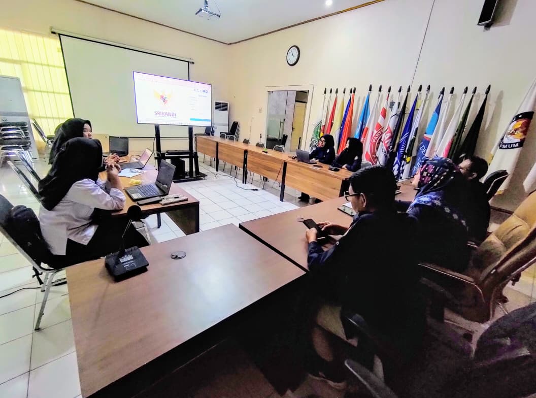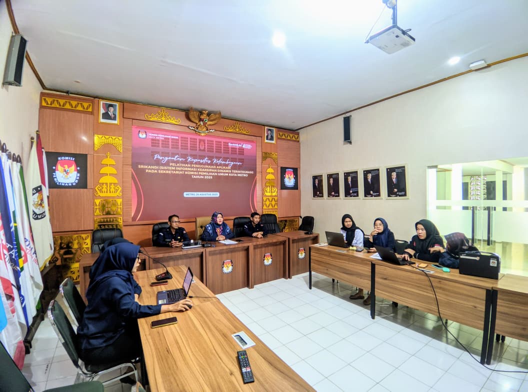 Kasubbag KUL Zilvia Evirilianty mendampingi Operator Srikandi Yeni Pratama dalam rangka melaksanakan kegiatan Penguatan kapasitas kelembagaan, dalam pelatihan Aplikasi Srikandi di Aula Kantor KPU Kota Metro kepada Staf KPU Kota Metro.