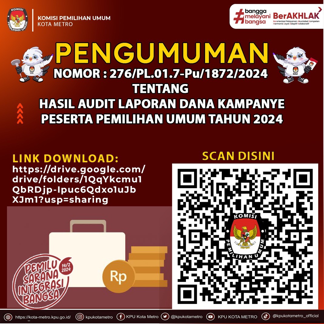 PENGUMUMAN HASIL AUDIT LAPORAN DANA KAMPANYE PESERTA PEMILIHAN UMUM TAHUN 2024