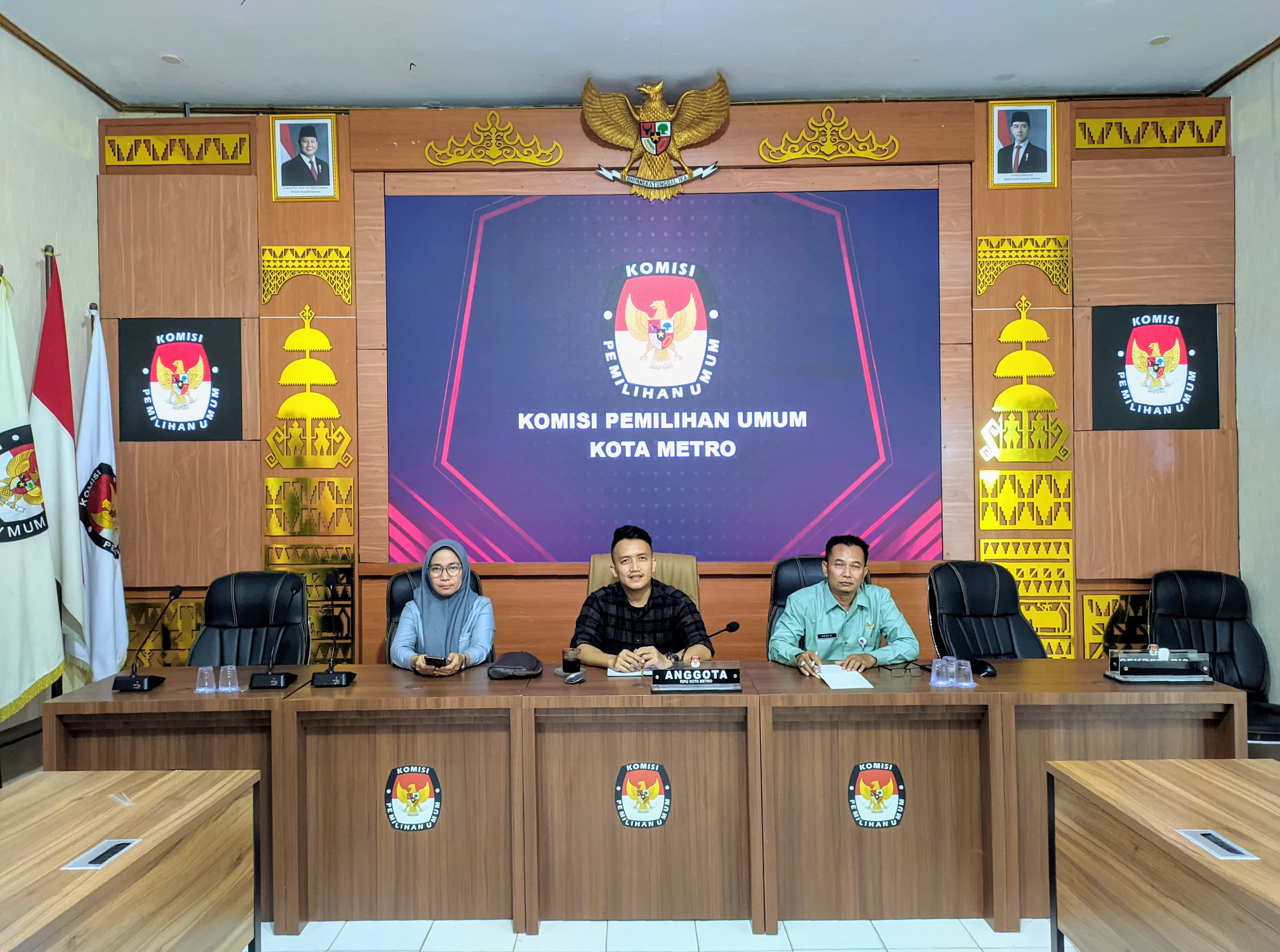 Ketua Divisi Parmas KPU Kota Metro Firman Arafat, Kasubbag SDM dan Parmas Dedi Suwarsono dan Operator Siparmas Cicin rosmita mengikuti Rapat Koordinasi Pelaksanaan Pendidikan Pemilih Pasca Pemilihan Umum dan Pemilihan Serentak Tahun 2024 secara daring di Aula KPU kota Metro Secara Daring melalui Zoom Meeting yang diselenggarakan oleh KPU Provinsi Lampung dan diikuti oleh KPU Kabupaten/ Kota Seluruh Lampung.