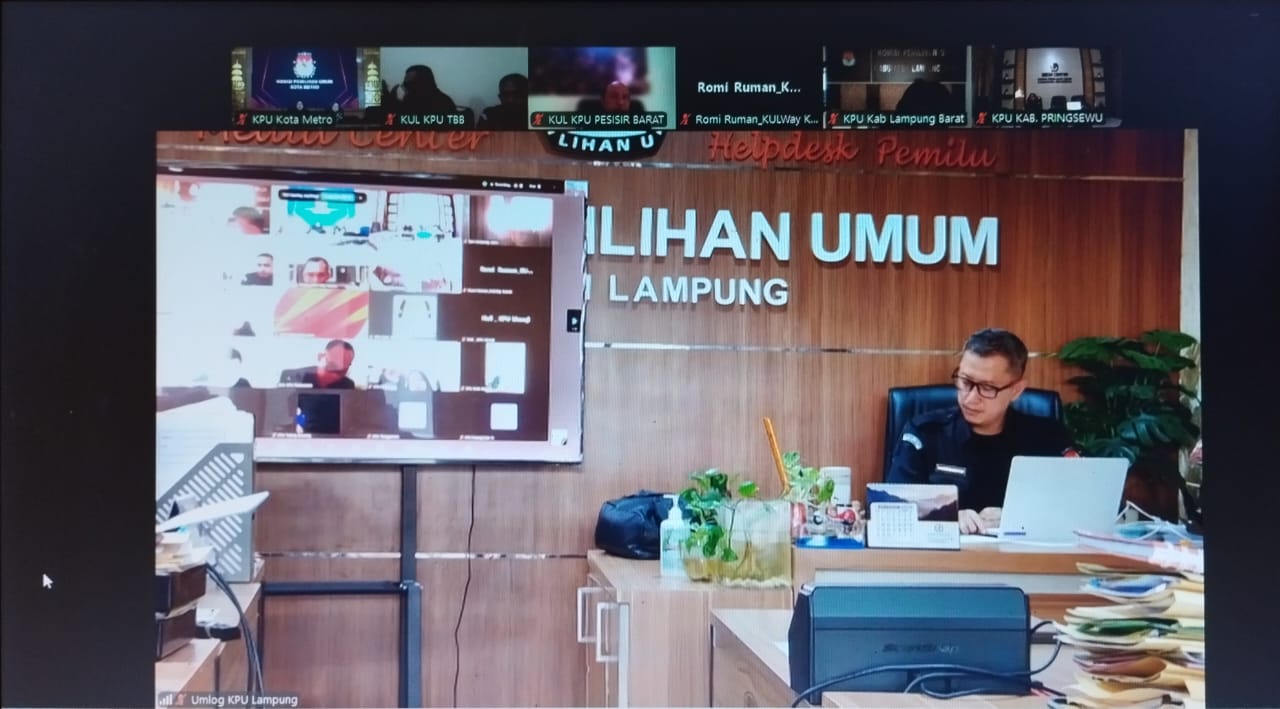Kasubbag KUL KPU Kota Metro bersama operator SILOG Desi Kusumawati mengikuti di lingkungan Sekretariat KPU se-Provinsi Lampung. Kegiatan dilaksanakan melalui Zoom Meeting Pukul 14.30 WIB s.d Selesai (27/08).