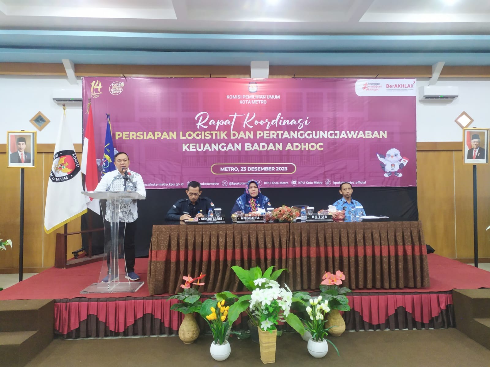 #temanpemilih, Sabtu, 23 Desember 2023 Kpu Kota Metro Mengadakan Kegiatan Rapat Koordinasi Persiapan Logistik dan Pertanggungjawaban Keuangan Badan Adhoc di Hotel Grand Skuntum Kota Metro.