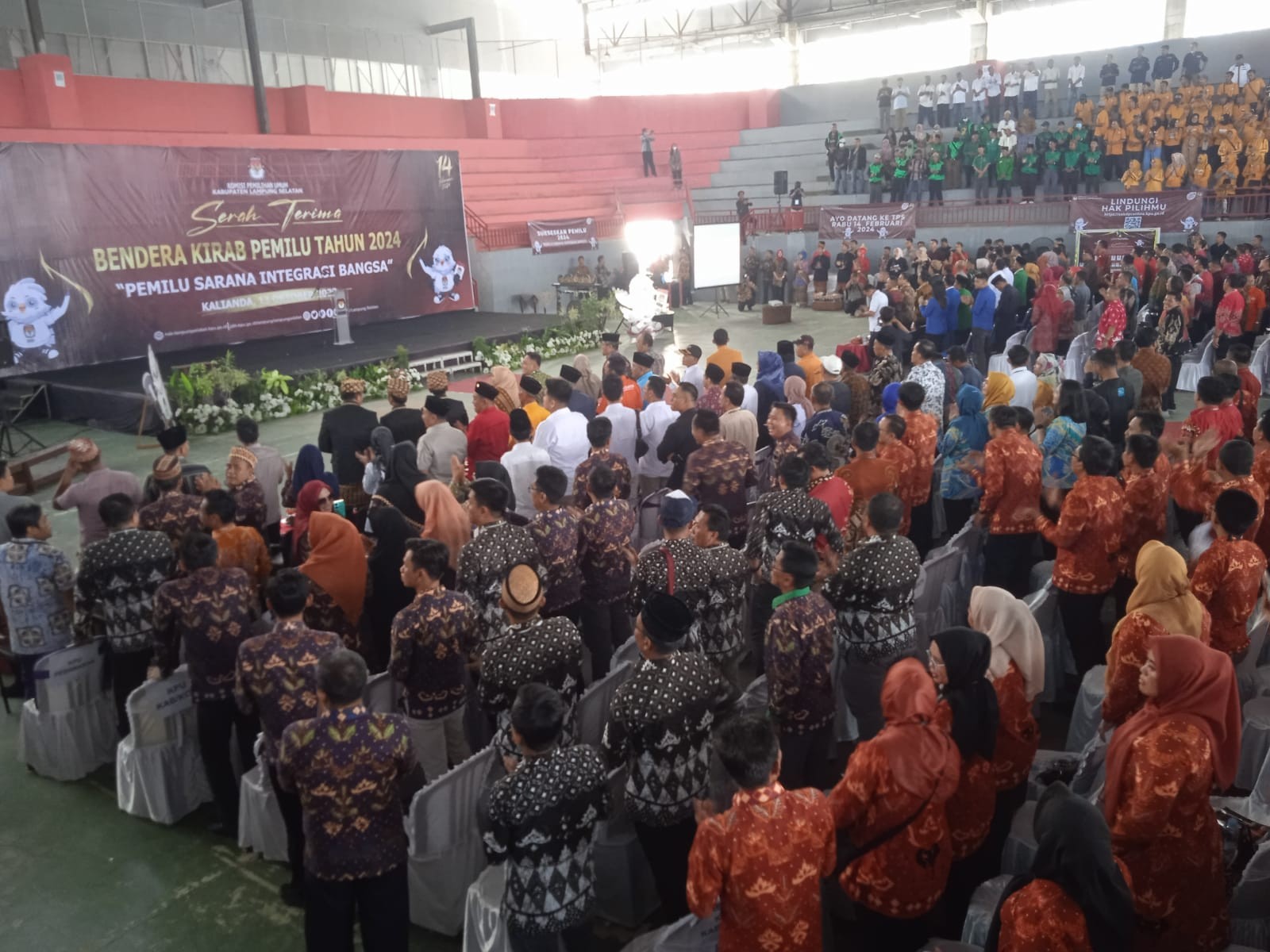 #temanpemilih, Jum’at, 13 oktober 2023, Ketua KPU Kota Metro, Nurris Septa Pratama, Anggota KPU Kota Metro (Tony Wijaya, Nova Hadiyanto, Ahmad Fatoni, Yunita Dewi Nurbaya) Sekretrais, Jumadi Ahmad, Kasubbag (Bambang Setyawan, Rudy, Dedi Suwarsono, Zilvia Evirlianty) mengikuti kegiatan Serah Terima Bendera Kirab Pemilu Tahun 2024 dari KPU Kabupaten Pesawaran ke KPU Kabupaten Lampung Selatan, yang diselenggarakan oleh KPU Kabupaten Lampung Selatan di GOR Way Handak. Dimana KPU Kabupaten Lampung Selatan Menjadi Kabupaten Terakhir untuk Provinsi Lampung yang menyelenggarakan Kirab, yang selanjutnya akan diserahkan ke Provinsi Banten.