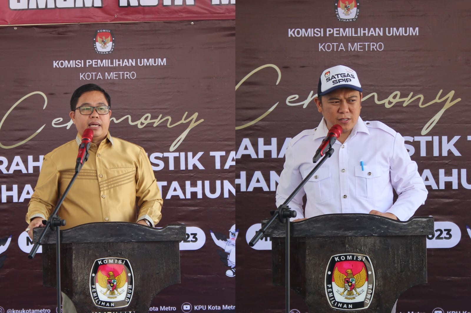 Ketua KPU Provinsinsi Lampung dalam Sambutannya mengatakan Tahap 1 untuk Metro berupa Kotak Suara yang bahannya lebih baik dari yang digunakan dalam Pemilu tahun 2019 walaupun sejenis Duplek yang kedap air. Untuk wilayah Kota Metro dalam pendistribusian logistic termasuk wilayah yang mudah terjangkau, dan dari volumenya termasuk yang tidak banyak, yang paling banyak di wilayah Kabupaten Lampung Tengah. Kondisi geografinya juga relative rata tidak berbukit bukit ataupun ada wilayah pulau. seperti di Lampung Barat, Pesisir Barat, ataupun Tanggamus.