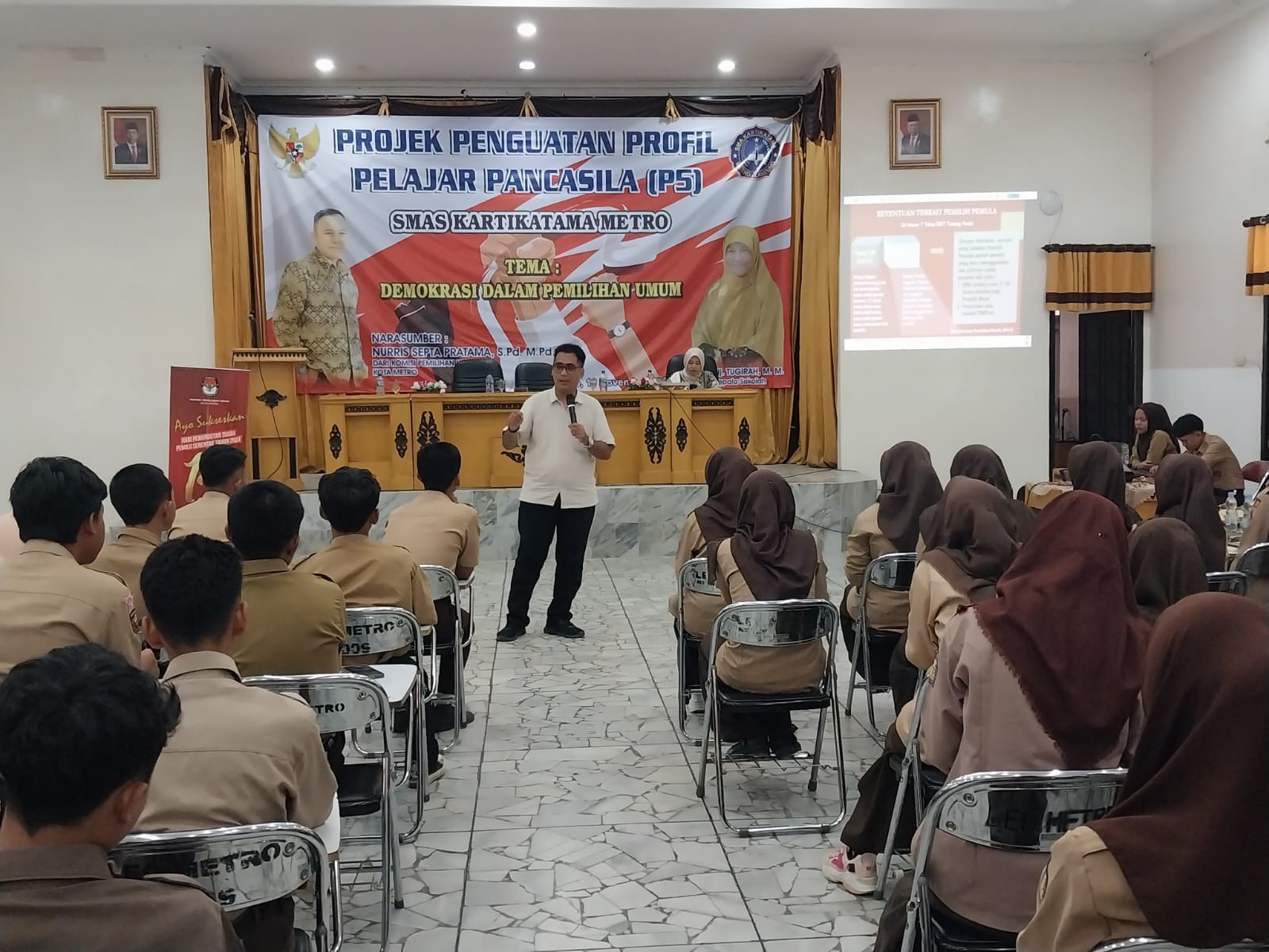 Sosialisasi Pendidikan pemilih di SMAS Kartikatama Metro dalam rangka Projek Penguatan Profil Pelajar Pancasila (P5)