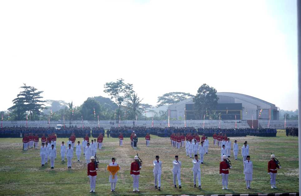Upacara HUT kemerdekaan Republik Indonesia ke 80 di Stadion Tejosari kota Metro