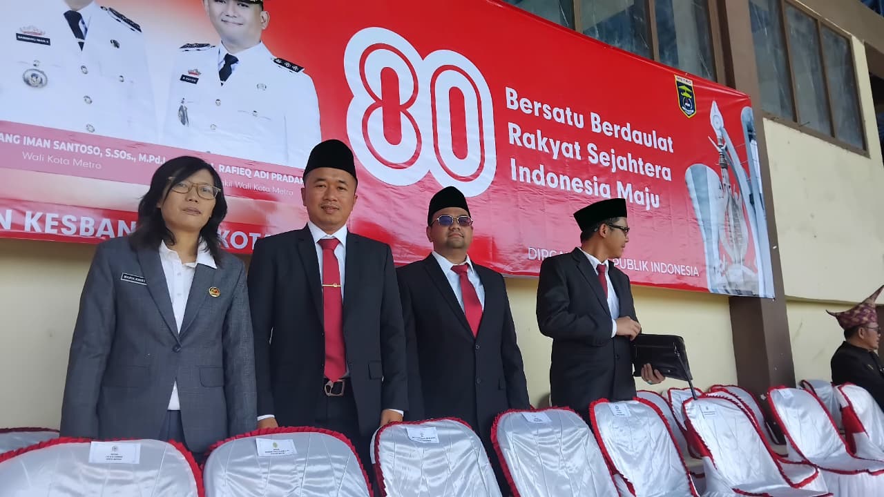 Ketua KPU kota Metro Erzal Syahreza Aswir Menghadiri Upacara HUT kemerdekaan Republik Indonesia ke 80 di Stadion Tejosari kota Metro.