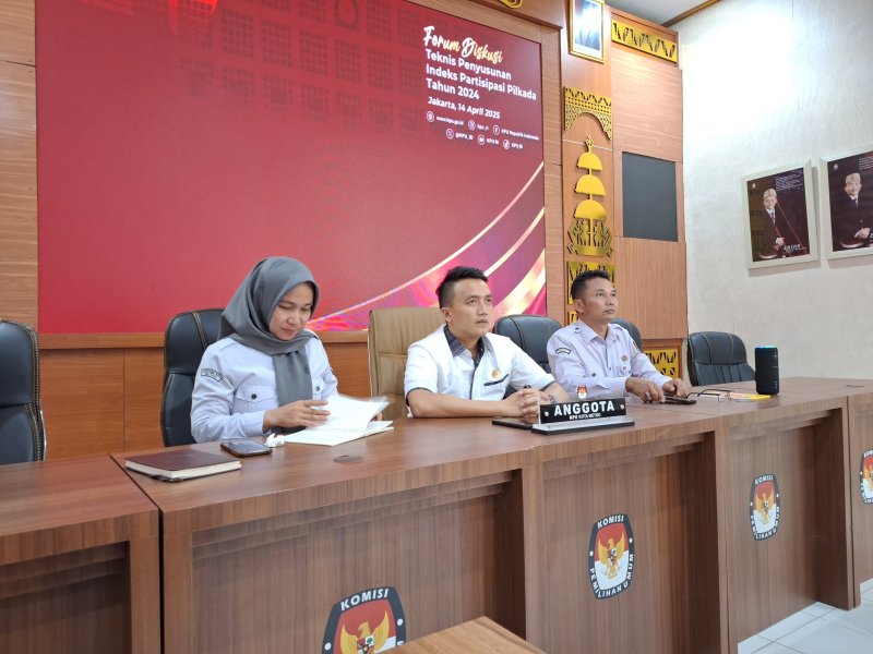 #TemanPemilih, Senin, 14 April 2025 , Anggota KPU Kota Metro, Ketua Divisi Parmas, Firman Arafat, Kasubbag SDM dan Parmas Dedi suwarsono dan Operator Siparmas Cicin Rosmita mengikuti kegiatan Forum Diskusi Penyusunan Indeks Partisipasi Pilkada Tahun 2024 secara daring melalui zoom meeting di aula KPU Kota Metro yang dilaksanakan oleh KPU Republik Indonesia dan dihadiri Deputi Bidang Dukungan Teknis Setjen KPU Eberta Kawima, Kepala Biro Partisipasi dan Hubungan Masyarakat Cahyo Ariawan, para narasumber dari penyusun IPP, dengan peserta diskusi teknis, secara daring Ketua Divisi Partisipasi dan Hubungan Masyarakat KPU Provinsi/KIP Aceh dan KPU/KIP Kabupaten/Kota se-Indonesia. Indeks Partisipasi Pilkada (IPP) adalah perwujudan visi misi KPU sebagai pusat pengetahuan dan pengalaman kepemiluan serta pilkada, juga sebagai pusat kolaborasi. Oleh karena itu, data yang diinput dalam IPP harus menggambarkan apa yang terjadi, berdasarkan instrumen yang ditentukan Hal ini disampaikan Anggota KPU August Mellaz saat membuka kegiatan Forum Diskusi Teknis Penyusunan Indeks Partisipasi Pilkada Tahun 2024, Pada pertemuan yang juga diisi dengan bimbingan teknis dari akademisi penyusun IPP. Mellaz menekankan bahwa IPP sebagai bentuk kontribusi kepada pembuat UU, pengetahuan masyarakat dan perkembangan demokrasi. #KPUMelayani #PilkadaSerentak2024 #kpukotametro