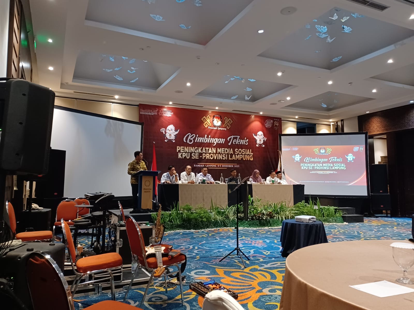 #temanpemilih, Ketua Divisi Parmas dan SDM KPU Kota Metro Yunita Dewi Nurbaya, Kasubbag Teknis Penyelenggara dan Parmas Rudy dan Admin Media Sosial Isnaini, Mengikuti Kegiatan Bimbingan Teknis Peningkatan Media Sosial KPU Se-Provinsi Lampung. Kegiatan ini diselenggarakan oleh KPU Provinsi Lampung di Hotel Sheraton Bandar Lampung dan Di Hadiri Perwakilan KPU Kabupaten Kota Se-Provinsi Lampung. Ketua KPU Provinsi Lampung Bapak Erwan Bustami membuka kegiatan ini , beliau menyampaikan media social sangat strategis untuk sosialisasi, informasi dan pendidkan pemilih bagi masyarakat saat ini. Setidaknya ada 4 Nara sumber yang memberikan paparan mengenai peningkatan media Sosial. Bapak Antonyus Ketua Divisi Parmas KPU Provinsi lampung menyampaikan bagaimana media sosial selalu diakses oleh masyarakat kita terutama anak muda milenial dan generasi Z dimana DPT (Daftar Pemilih Tetap) didominasi oleh pemilih anak muda tersebut. Untuk membuat media sosial lebih menarik dan viral, Bapak Arif Nugroho dari Kominfo Provinsi Lampung memberikan tips tipsnya dimana beliau memberikan contoh bagaimana media sosial dapat membantu menjadi corong pembangunan di provinsi Lampung. Untuk meningkatkan kualitas tampilan media sosial diperlukan teknik pengambilan gambar yang mumpuni, Bapak Yopie pankey memberikan trik trik photografi sebagai standar dalam teknik pengambilan gambar, dimana diupayakan gambar yang dihasilkan jika dilihat dapat bercerita. Aplikasi Aplikas dalam pengeditan gambar maupun video sebelum diunggah ke media sosial juga diperkenalkan oleh Bapak Deddy Sulaimawan, S.H., M.M. seorang influencer terbaik di Lampung dengan tema Strategi Penyusunan Konten Menarik & Informatif Dalam Pengelolaan Media Sosial.