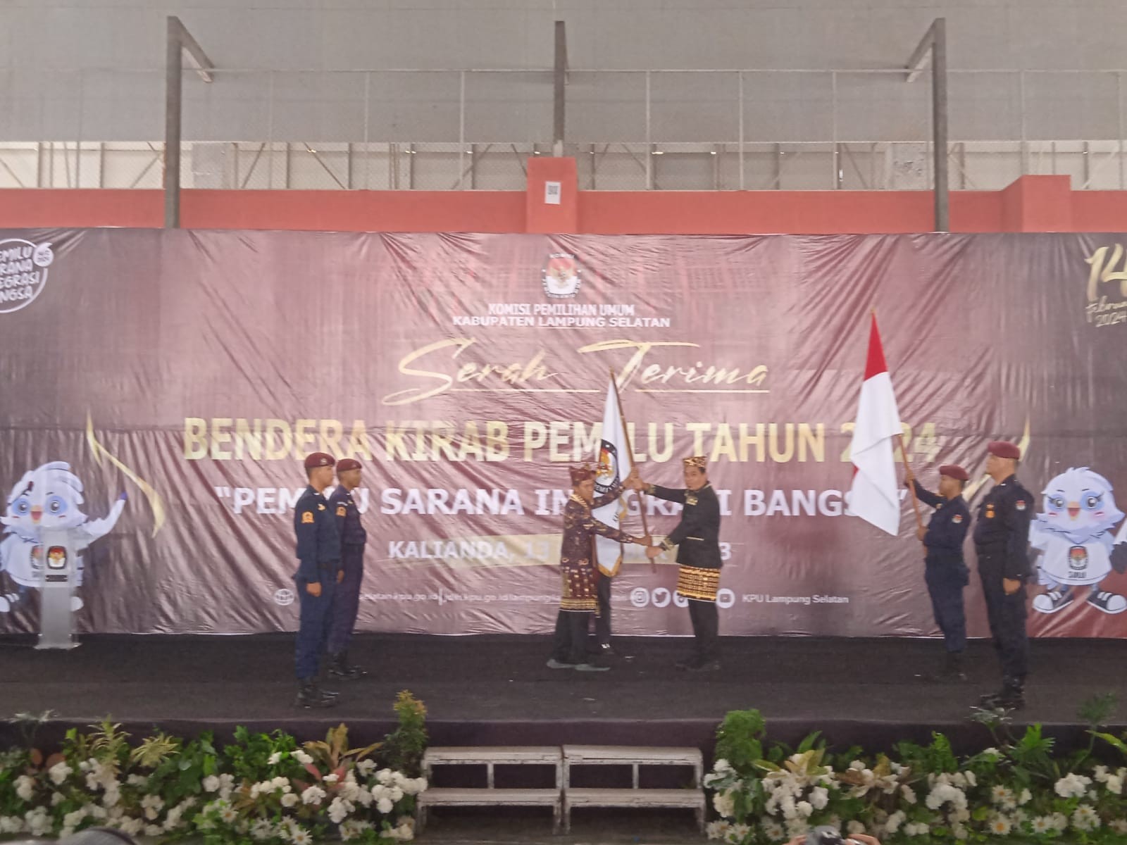 #temanpemilih, Jum’at, 13 oktober 2023, Ketua KPU Kota Metro, Nurris Septa Pratama, Anggota KPU Kota Metro (Tony Wijaya, Nova Hadiyanto, Ahmad Fatoni, Yunita Dewi Nurbaya) Sekretrais, Jumadi Ahmad, Kasubbag (Bambang Setyawan, Rudy, Dedi Suwarsono, Zilvia Evirlianty) mengikuti kegiatan Serah Terima Bendera Kirab Pemilu Tahun 2024 dari KPU Kabupaten Pesawaran ke KPU Kabupaten Lampung Selatan, yang diselenggarakan oleh KPU Kabupaten Lampung Selatan di GOR Way Handak. Dimana KPU Kabupaten Lampung Selatan Menjadi Kabupaten Terakhir untuk Provinsi Lampung yang menyelenggarakan Kirab, yang selanjutnya akan diserahkan ke Provinsi Banten.