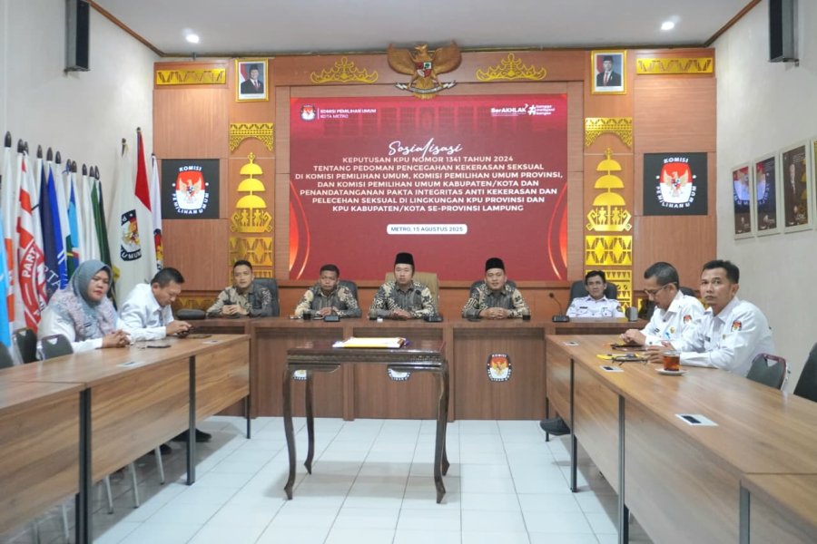 #temanpemilih, KPU Kota Metro mengikuti Sosialisasi Keputusan KPU Nomor 1341 Tahun 2024 tentang Pedoman Pencegahan Kekerasan Seksual di KPU, KPU Provinsi dan KPU Kabupaten/Kota serta Penandatanganan Pakta Integritas Anti Kekerasan dan Pelecehan Seksual di lingkungan KPU Provinsi dan KPU Kabupaten/Kota se-Provinsi Lampung via daring, Kamis (14/8/2025) pagi. Hadir dalam kegiatan ini Ketua Divisi Hukum dan Pengawasan KPU Iffa Rosita yang juga memberikan arahan. "Kita ini bersama-sama mencegah adanya tindak kekerasan atau pelecehan seksual di lembaga kita," ujar Iffa. Kegiatan yang dibuka oleh Ketua KPU Provinsi Lampung Erwan Bustami ini menghadirkan Mila Lastri Mandala (Pengurus Majelis Wilayah FORHATI Lampung) sebagai salah satu narasumber. Narasumber lain adalah Ketua Divisi SDM KPU Provinsi Lampung yang juga Ketua Satgas Pencegahan Kekerasan Seksual Angga Lazuardi dan Ketua Divisi Hukum dan Pengawasan KPU Provinsi Lampung Hermansyah selaku anggota Satgas Pencegahan Kekerasan Seksual. #kpukotametro #kpumelayani