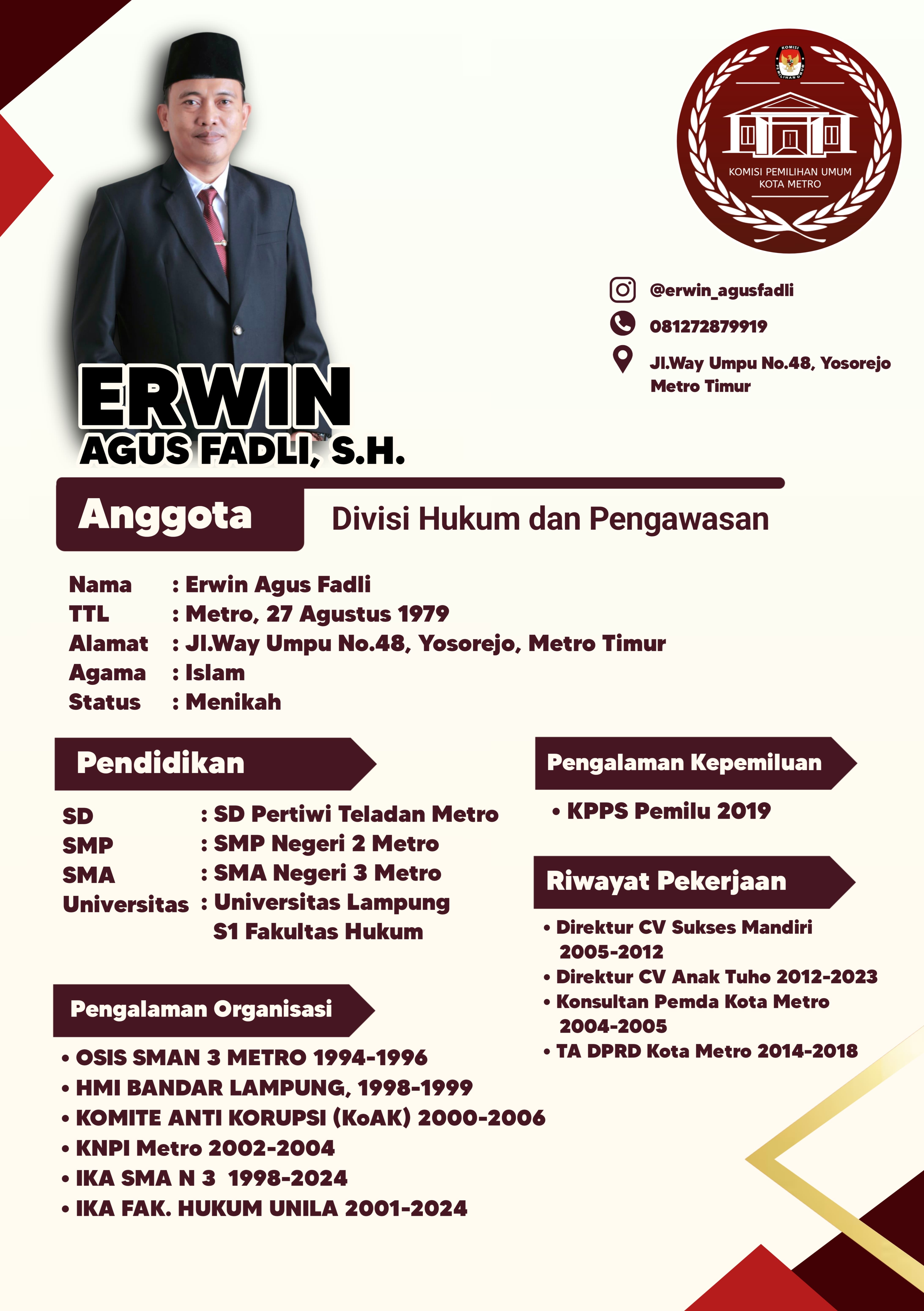ERWIN AGUS FADLI, S.H. (Anggota KPU kota Metro)